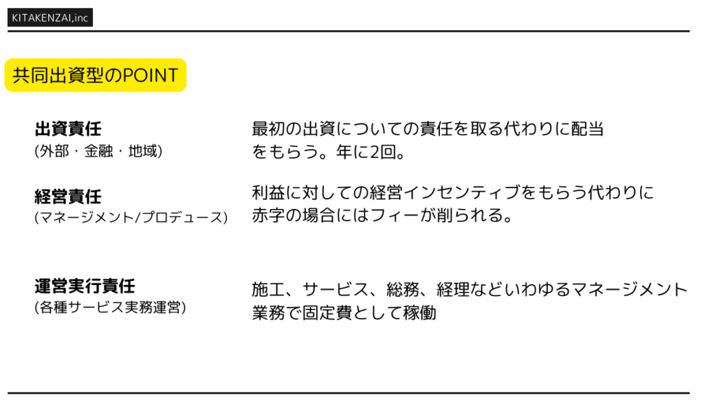 - 地元事業者が役割分担し、出資/運営/経営インセンティブを設計するスキーム。